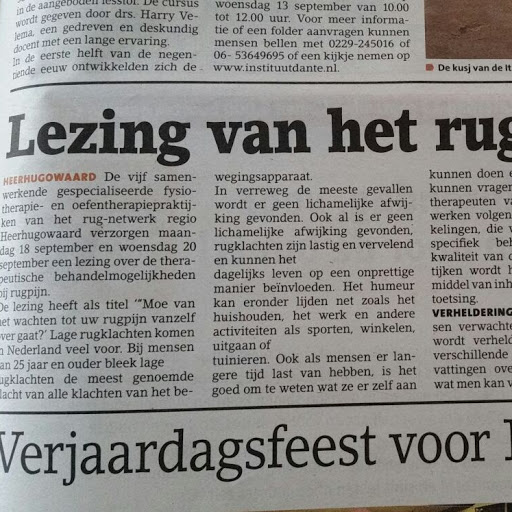 Folder Regionaal team Rug-netwerk Heerhugowaard Lezing bibliotheek Presentatie Het team van het Rug-netwerk Heerhugowaard bestaat uit onderstaande praktijken: